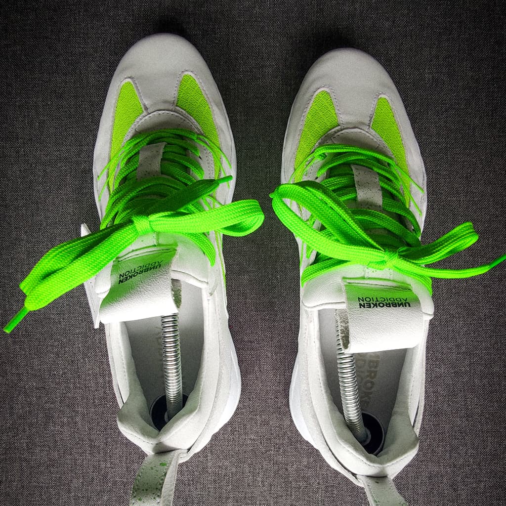 Kombinace bílé a neonově zelené pro odvážnou ženu.