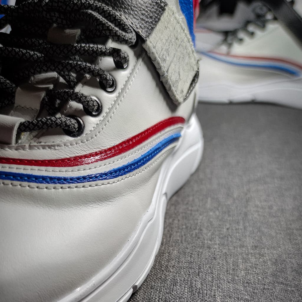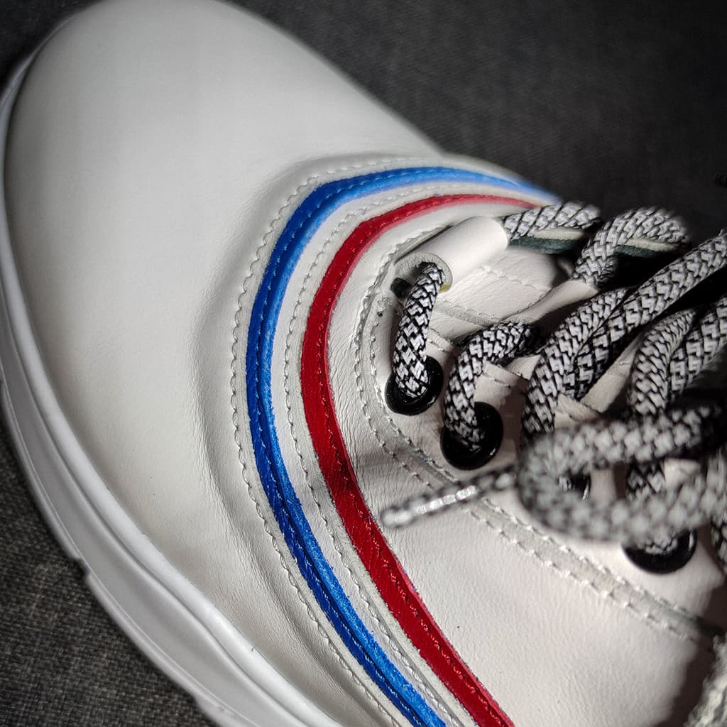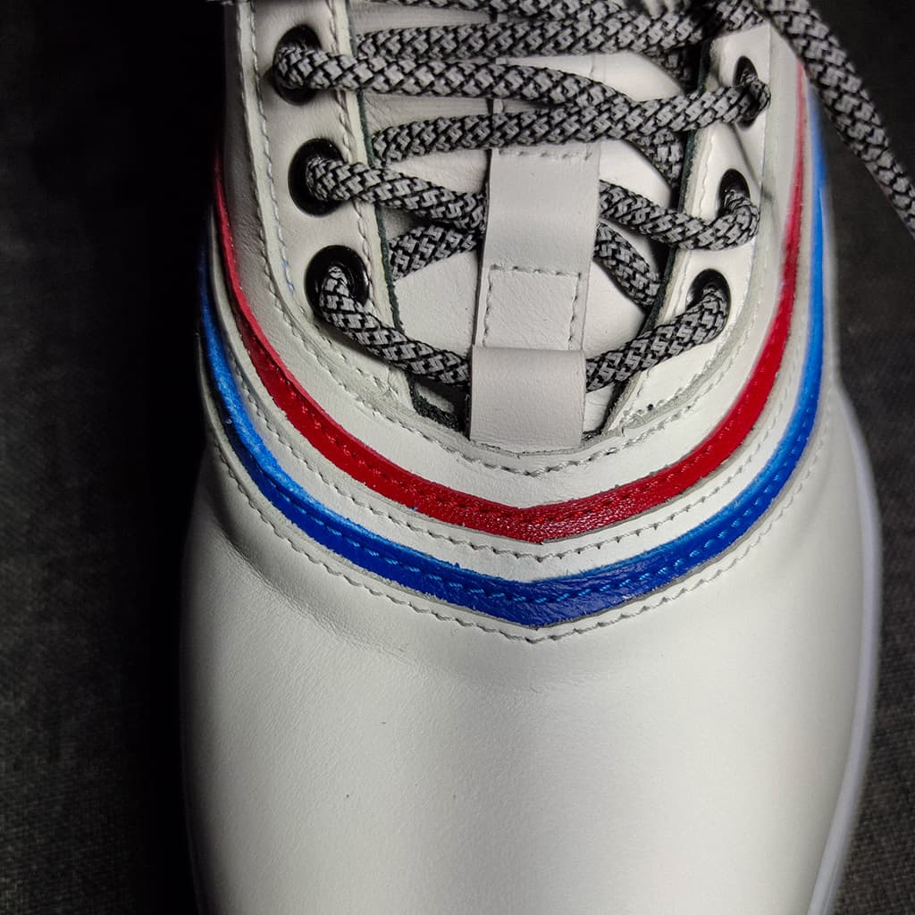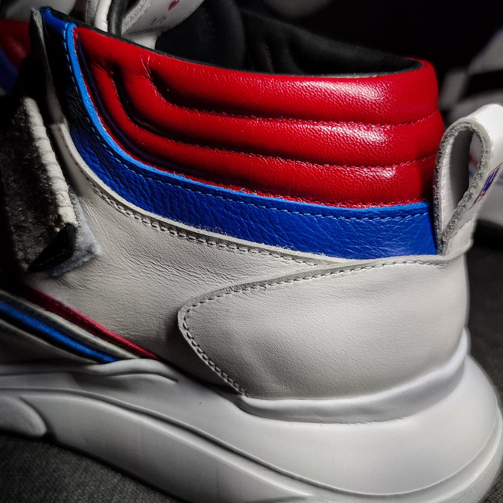 Bílá modrá červená odkazují na český hokej. Specialitou těchto tenisek je stahovací pásek na suchý zip ve tvaru hokejky.