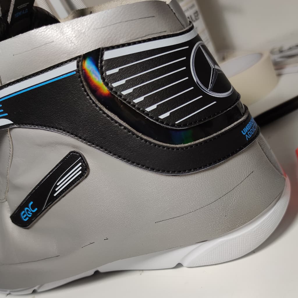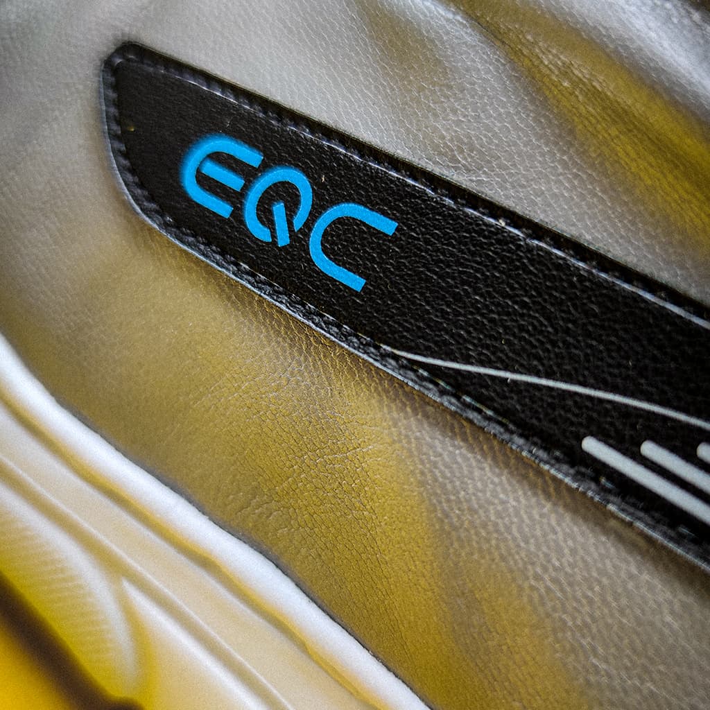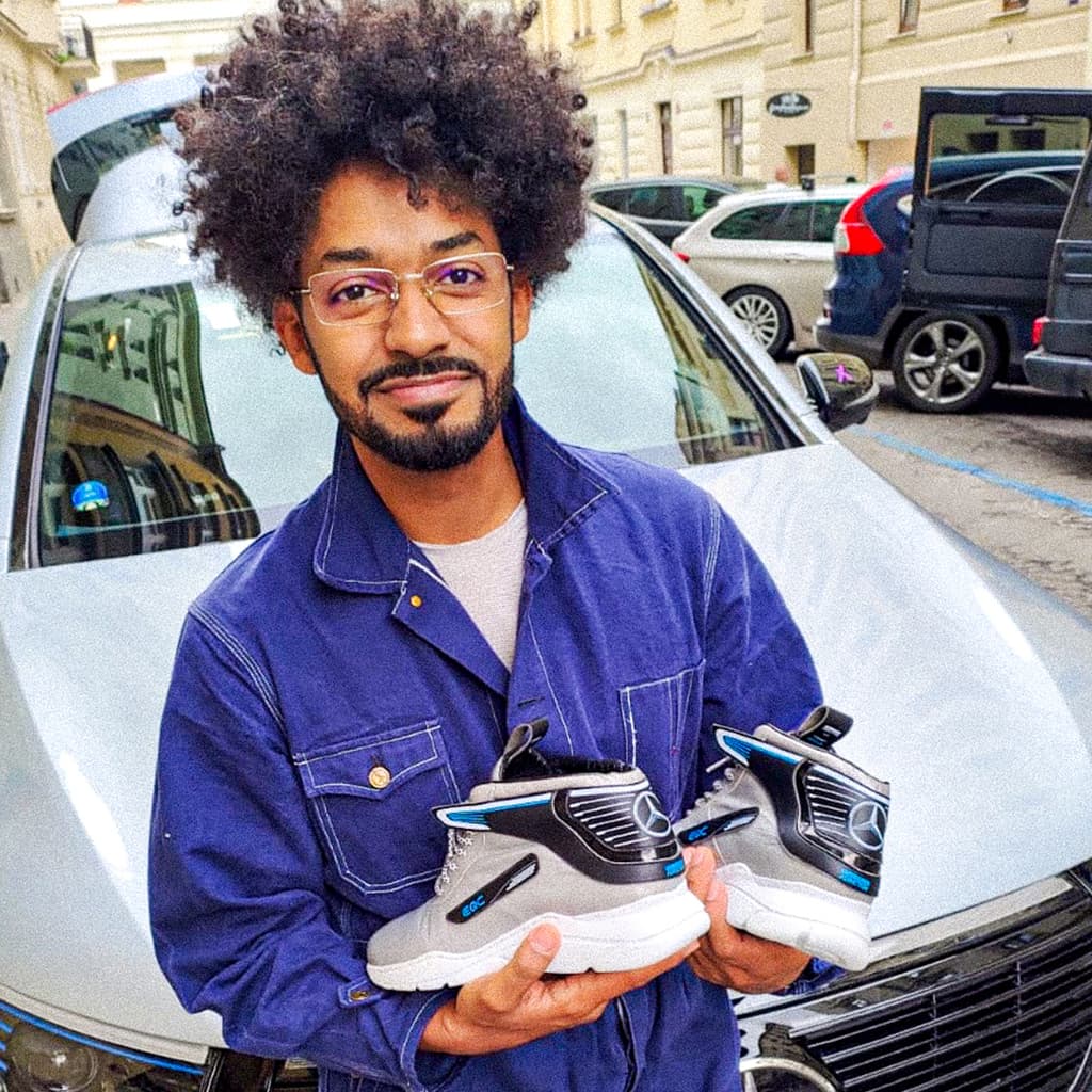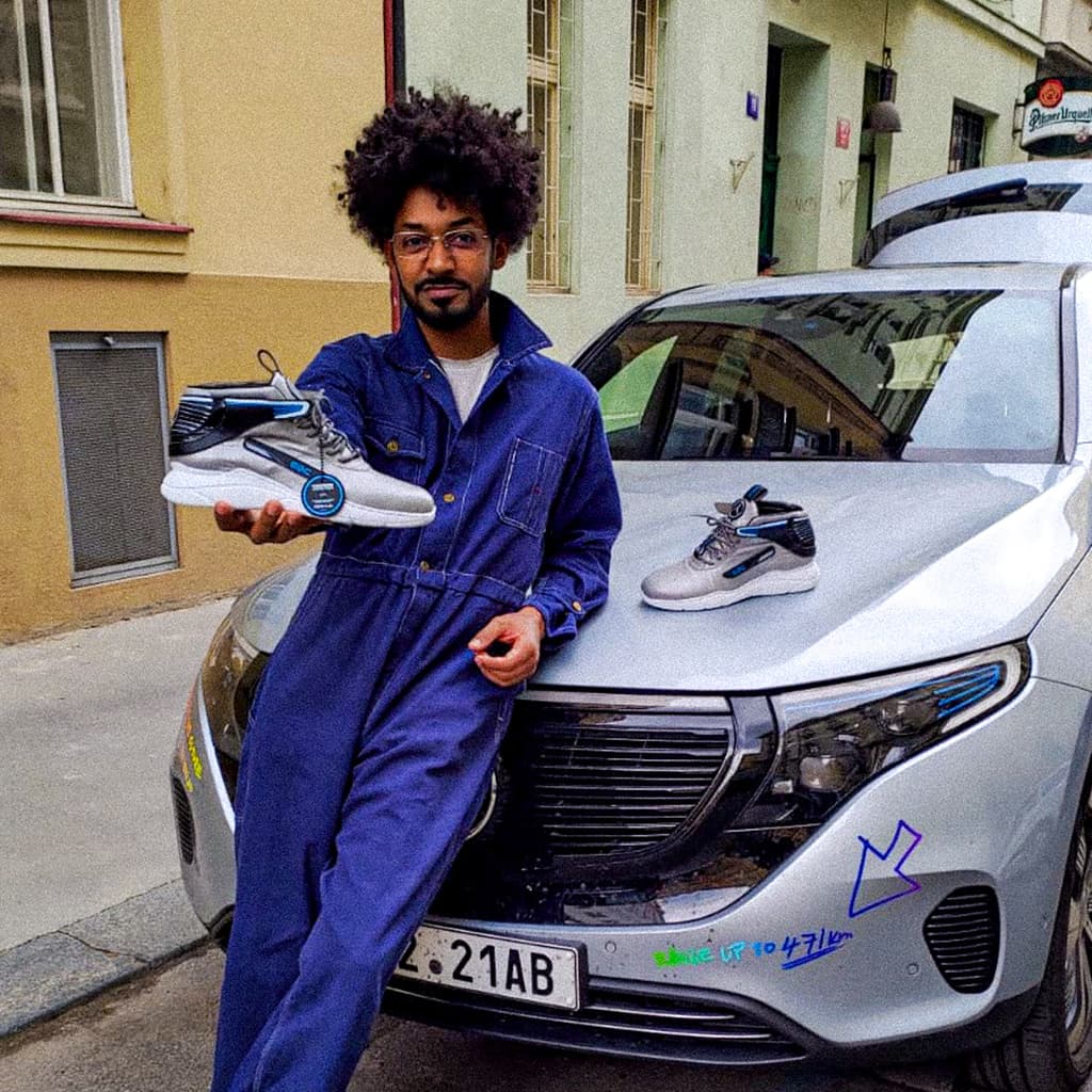 Tvar zadní části tenisek vychází z designu přední části vozu Mercedes-Benz EQC. Barvy jednotlivých dílů tenisek jsou voleny tak, aby se co nejvíce přiblížily celkovému designu auta. Tyto tenisky byly vyrobeny pro YEMI A.D. (Multi-disciplinary creative).